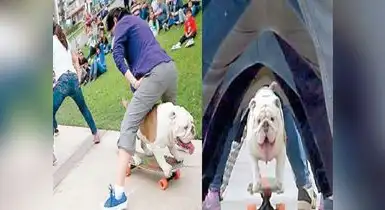 Un bulldog peruano acaba de romper el Récord Guinness de mayor distancia recorrida con una patineta por un perro, al pasar por un túnel formado entre las piernas de 30 personas. Un video publicado recientemente en YouTube da cuenta de su proeza.