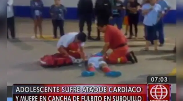 Era el penúltimo partido de un campeonato de fulbito de menores, pero para el menor J.M.L.C. (16) se convirtió en el último de su vida, porque murió en plena losa deportiva en las instalaciones de la canchita Villa Victoria, en Surquillo.