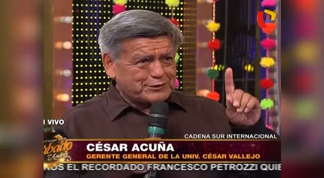 En el programa "Porque hoy es sábado con Andrés", Acuña ingresó al set en medio una musicalización que decía "César Acuña, presidente del Perú" y se presentó como el gerente general de la Universidad César Vallejo.