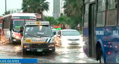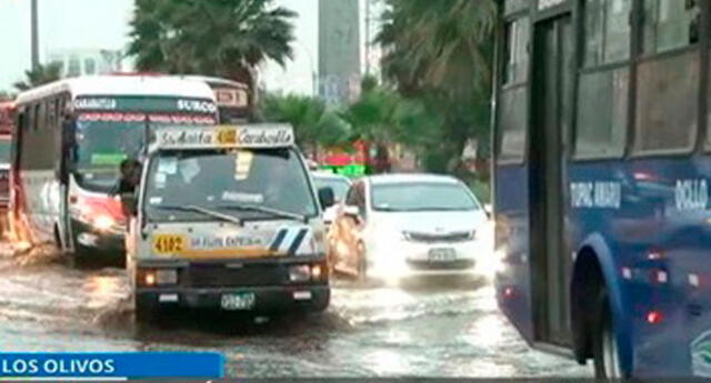 Los Olivos: Aniego genera congestión vehicular en la Av. Universitaria