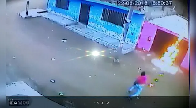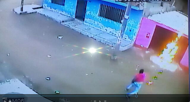 Una cámara de seguridad grabó el preciso instante del hecho. En las imágenes se ve que dos sujetos llegan al jirón Ricardo Palma 296 en una mototaxista, uno de ellos baja y lanza una botella de vidrio que tenía combustible, provocando que la vivienda se incendiara.