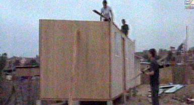 Solo en dos días les tomo a estos jóvenes italianos de entre 15 y 18 años construir las casa prefabricadas para 32 familias de Cañete