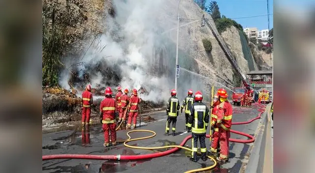 Un incendio que se viene registrando desde hace casi 45 minutos en un acantilado de la Costa Verde, a la altura del distrito de Barranco, ha provocado la caída de varias piedras en la vía y el caos vehicular en ambos sentidos de este circuito de playa.