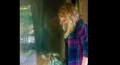 Durante una visita al zoológico de Potawatomi, la mujer se acercó a la jaula de un tigre, que, en lugar de reaccionar agresivamente, acarició su vientre y el rostro de la mujer a través de la jaula. El video fue colgado en YouTube y tiene varias visitas.