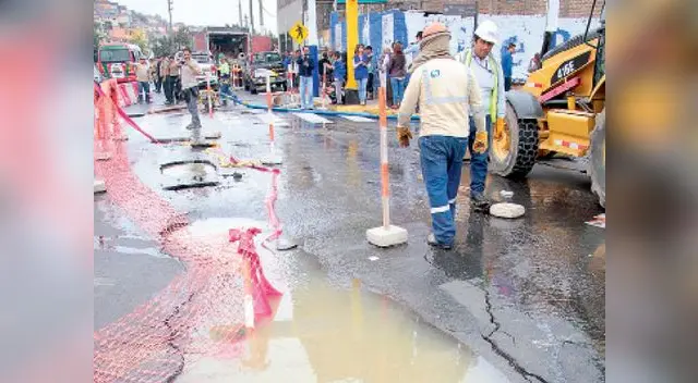 El problema se inició en la noche del jueves con tres agujeros, pero durante la madrugada aumentaron por el mal estado de la tubería de Sedapal. Esta empresa inició las labores de reparación en la mañana.