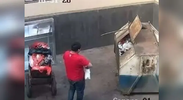 Las cámaras de seguridad de un local registraron los precisos momentos en que el sujeto lleva en una bolsa del papel a la bebé, de solo dos horas de nacida, y con determinación arroja al menor en el cubo de basura.