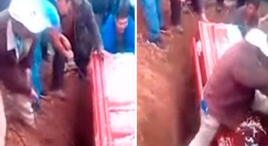 Hombre cae sobre ataúd en pleno entierro y provoca el pánico entre los deudos [VIDEO]