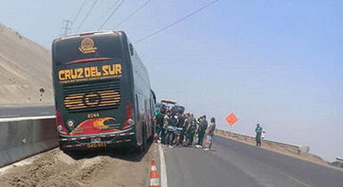 El bus interprovincial de la empresa Cruz del Sur se despistó en la variante de Pasamayo, Panamericana Norte. El incidente fue reportado por la ciudadana Carmen Tocón Armas, a través de La República.