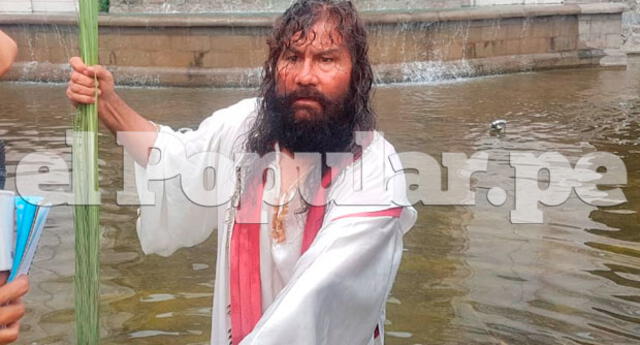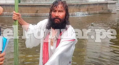 Mario Valencia escenificó el bautizo de Jesús este Jueves Santo junto a su elenco, en el Paseo de las Aguas, en el Rímac.