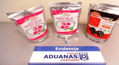 Una peruana quedó detenida enChileluego que fiscalizadores del Servicio Nacional de Aduanas descubrieran entre su equipajedrogacamuflada en envases de maca.