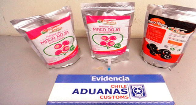 Tacna. La atraparon infraganti. Una peruana quedó detenida en Chile luego que fiscalizadores del Servicio Nacional de Aduanas descubrieran entre su equipaje droga camuflada en envases de maca. Se trata de cocaína de alta pureza, cuyo valor es importante en el mercado europeo.