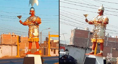A un día de haber inaugurado una estatua delSeñor de Sipán, en el distrito de Moche, provincia de Trujillo, desconocidos se llevaron la corona de bronce que ostentaba el gobernante.