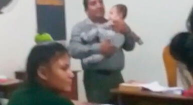 Undocenteuniversitario decidió cuidar albebéde su alumna para que esta pueda concentrarse mejor durante una evaluación y salga airosa en sus estudios. Ocurrió en Junín.