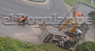 Camión que transportaba piedras se voltea en la Costa Verde [VIDEO]