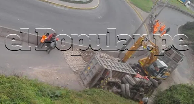 El accidente requirió de la presencia de un tráiler para que se encargue de levantar todas las piedras que están regadas en la pista e impiden el libre tránsito de los vehículos.