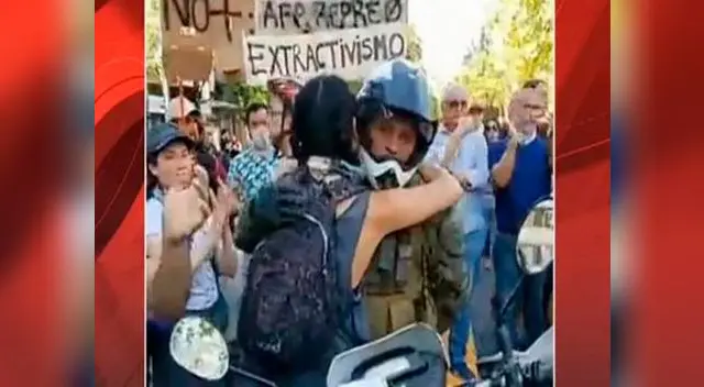 Como se aprecia en las imágenes, un carabinero llora mientras una manifestante lo abraza para consolarlo, lo que desató aplausos instantáneos para bajar la tensión en el país trasandino.