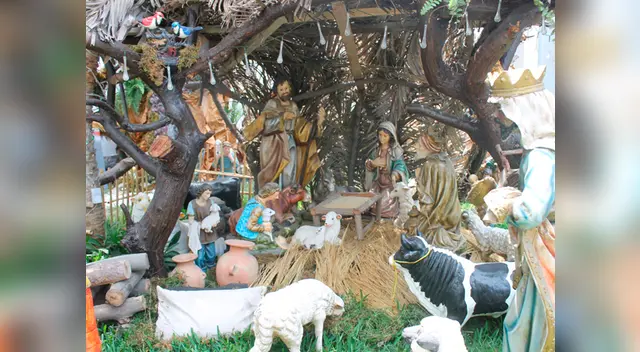 Una caída de agua, pajaritos que cantan y se mueven son algunos de los elementos usados en esta representación del nacimiento del Niño Jesús.
