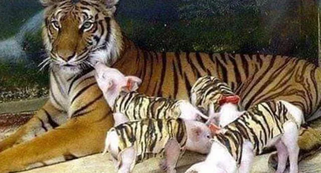 Cibernautas en redes recuerdan a mamá tigre que adoptó a cerditos [FOTOS]