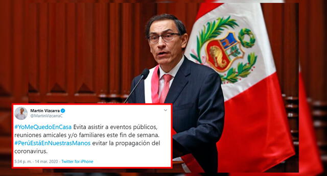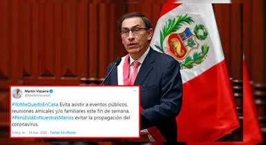 “#YoMeQuedoEnCasa Evita asistir a eventos públicos, reuniones amicales y/o familiares este fin de semana. #PerúEstáEnNuestrasManos evitar la propagación del coronavirus”, escribió el mandatario en su cuenta de Twitter.