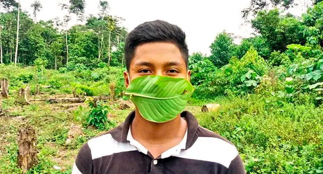 Los nativos de la comunidad de Tampe del distrito Santa María de Nieva, provincia de Condorcanqui buscaron otra alternativa a falta de mascarillas en la zona, usando hojas de bijao para protegerse del mortal virus de Wuhan.