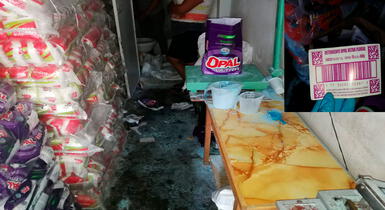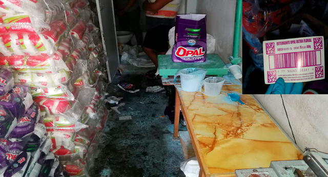 En el predio incautaron maquinarias de sellado y una gran cantidad de bolsas, cada una de 24 unidades, de detergente y sal yodada. Los peritos de criminalística comprobaron que se trataba de productos adulterados..