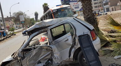 En esta mañana en el cruce de la calle San Carlos con la avenida Universitaria en el distrito de Comas, se reportó un accidete vehícular cuando un bus y un auto chocaron, esto ocasionó siete heridos y un muerto.