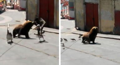 Esta vez, en la ciudad de Ilo, en la región Moquegua, un lobo marino, junto a unos pelícanos y varias gaviotas fueron captados trasladándose tranquilamente por las diferentes calles de la ciudad portuaria.