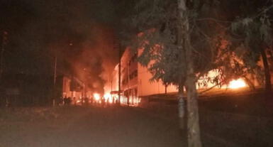 Vecinos se enfrentaron con palos y antorchas a la policía y a militares por impedir que el traslado de pacientes con coronavirus a un albergue a su distrito.