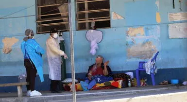Médicos del Hospital II de Sullana, en Piura, se han visto forzados a atender a los pacientes que llegan sospechosos de tener el coronavirus en el suelo debido a que el nosocomio está repleto.