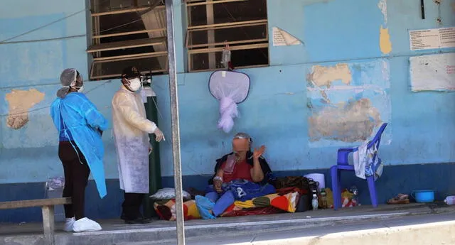 “han tenido que colocar a mi hermano en un colchón en la explanada (cerca de la calle), porque ya no hay camas dentro del área que ha sido destinada para los pacientes con coronavirus. Él viene recibiendo oxígeno”, señaló un familiar de los posibles infectados por el COVID-19, quien denunció que ellos son asistidos en estas condiciones a pesar de que no pueden respirar bien.