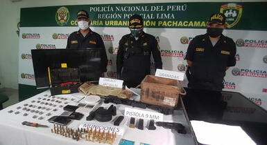 Los presuntos delincuentes fueron trasladados a la Comisaría Urbanización de Pachamac para las diligencias de ley y se les investigará por el presunto delito contra el patrimonio, tenencia ilegal de armas de fuego y tráfico de drogas.