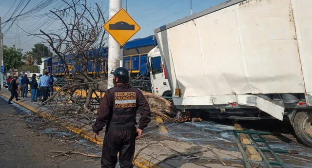 Un violento choque entre un camión y un tren se registró en horas de la mañana en la avenida Alfonso Ugarte, en Arequipa.