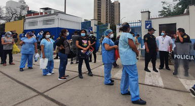 "Ayer por la tarde me indica mi jefa que venga el personal que sale de guardia, que esté de día libre. Se supone que debió priorizarse área crítica. No estoy en la lista, desde abril estoy en el área de UCI COVID y es muy lamentable que no esté en la lista. Estamos expuestos diariamente al paciente", expresó la licenciada Diana Vralla Saravia a RTV.