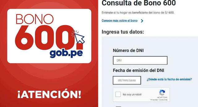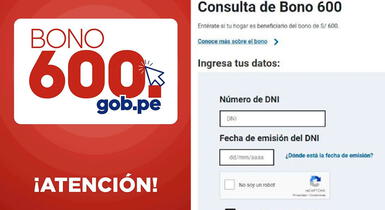 LINK de consulta del bono de 600 soles: Ingresa desde tu celular o computadora al siguiente link oficial del Midis https://consultas.bono600.gob.pe con tu número y fecha de emisión del DNI.