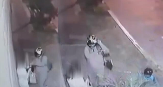 En la grabación se pudo ver que un repartidor de delivery que se encuentra conduciendo por el lugar, pero poco pudo hacer y solo atinó a pasar de frente, siguiendo su ruta porque los hampones estaban armados.
