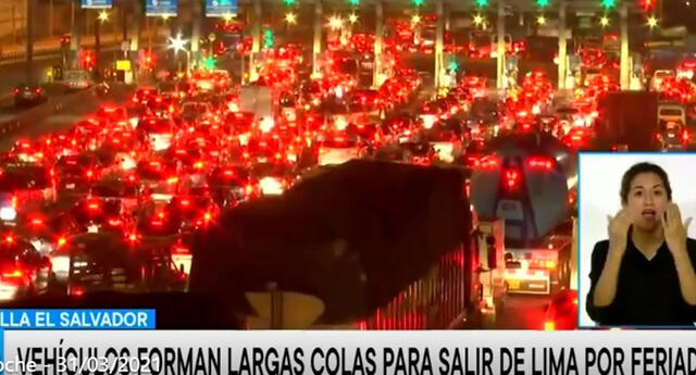 Las cámaras de TV Perú captaron cómo los vehículos formaban largas colas para pasar el peaje. Según las redes sociales, esto empezó desde las 7: 00 p. m.