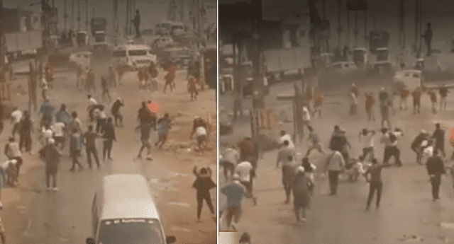 Según comentaron comerciantes de la zona aparecieron unos sujetos con polos rojos y otros con diferente color de polos cuando empezó el enfrentamiento, el cuál duró aproximadamente como 20 minutos.