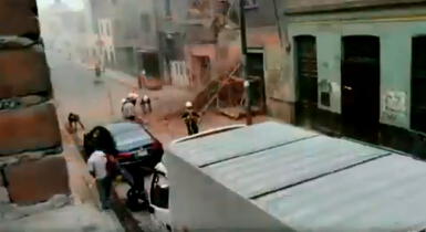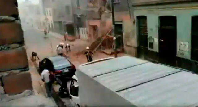 Según las primeras imágenes de Canal N, se informó de un derrumbe de una casona a la altura de la cuadra cinco del jirón Huanta. Sin embargo, todo se trató de un episodio polvoriento.