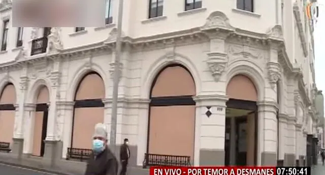 Luego de llevarse a cabo la segunda vuelta de las Elecciones de 2021, entidades bancarias y negocios adyacentes ubicados a pocos metros de la Plaza San Martín, en el Centro de Lima, amanecieron protegidos con madera, a fin de evitar cualquier tipo de daño en sus instalaciones ante posibles protestas tras darse los primeros resultados oficiales de la ONPE.