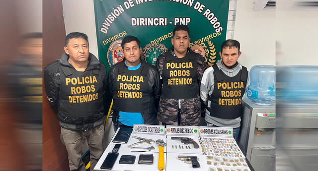 La policía informó que esta banda operaba bajo la modalidad del asalto y robo a mano armada a personas y locales comerciales en Los Olivos y San Martín de Porres. Entre sus pertenencias se les encontró herramientas y armas de fuego.