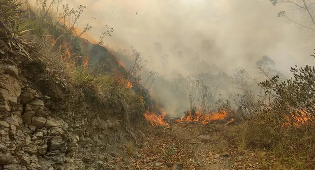 Un incendio forestal registrado en el distrito de Cuyo Cuyo, provincia de Sandia, en Puno. dejó decenas de alpacas calcinadas, veinte hectáreas de bosques quemados, y viviendas afectadas.