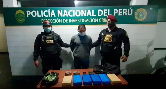 Es así que los agentes del Escuadrón de Emergencias, al mando del coronel PNP Freddy Velásquez, intervienen el vehículo menor donde de pasajero estaba Santos Flores Mejía (58), el mismo que tenía en su poder una mochila negra con dos paquetes con droga.