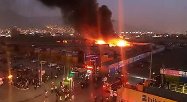 Según las primeras imágenes difundidas a través de las redes sociales, se observa a comerciantes intentando pedirle a alguien, que se encuentra atrapado entre las llamas, que salte. Un varón, incluso, entre congojas le pide lo mismo.