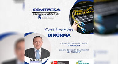 “Comtecsa del Perú, destacada empresa del mercado de mantenimiento de Data Centers, gracias al gentil apoyo de Programa Gubernamental Pro Innovate, ha conseguido con fecha 28 de diciembre 2021 la certificación de Gestión Binorma ISO 9001:2015 S.G. de Calidad e ISO14001:2015, S.G. de Medio Ambiente. Sin duda este gran logro para COMTECSA, empresa con presencia en Perú desde el año 2012, refuerza su constante compromiso hacia la entrega de Servicios de Excelencia a sus Clientes, así como la preservación del Medio Ambiente de la sociedad que lo rodea”, indicó Raul Vieira, controller en Comtecsa del Perú SAC.