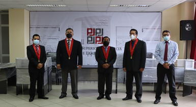 En ese sentido, en la significativa ceremonia, el titular de nuestra institución hizo la entrega simbólica de los bienes adquiridos a los integrantes Primera Sala Civil de Chiclayo, los jueces superiores Cástulo Rojas Díaz, Enrique Salazar Fernández y Juan Terán Arrunátegui; y al administrador del Módulo Civil Corporativo de Litigación Oral, abogado Gustavo Muguerza Mego.