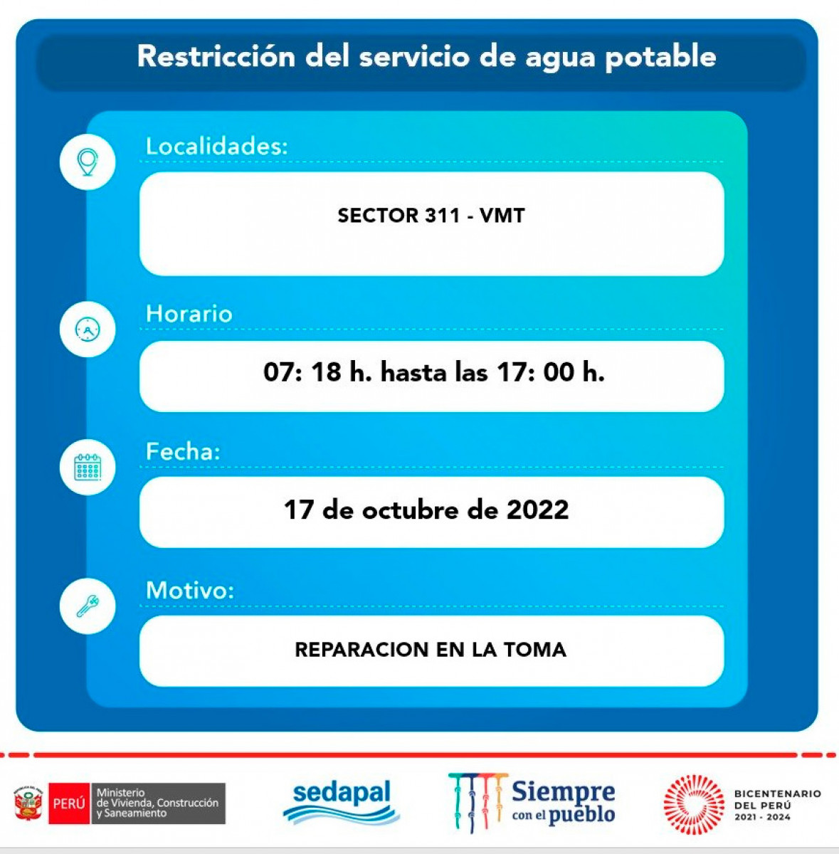 Corte de agua en Villa María del Triunfo