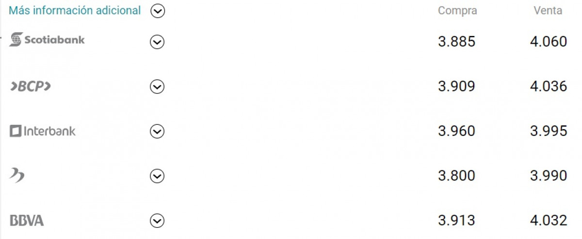 De acuerdo al portal cuantoestaeldolar.pe, el tipo de cambio en los bancos se cotiza en: