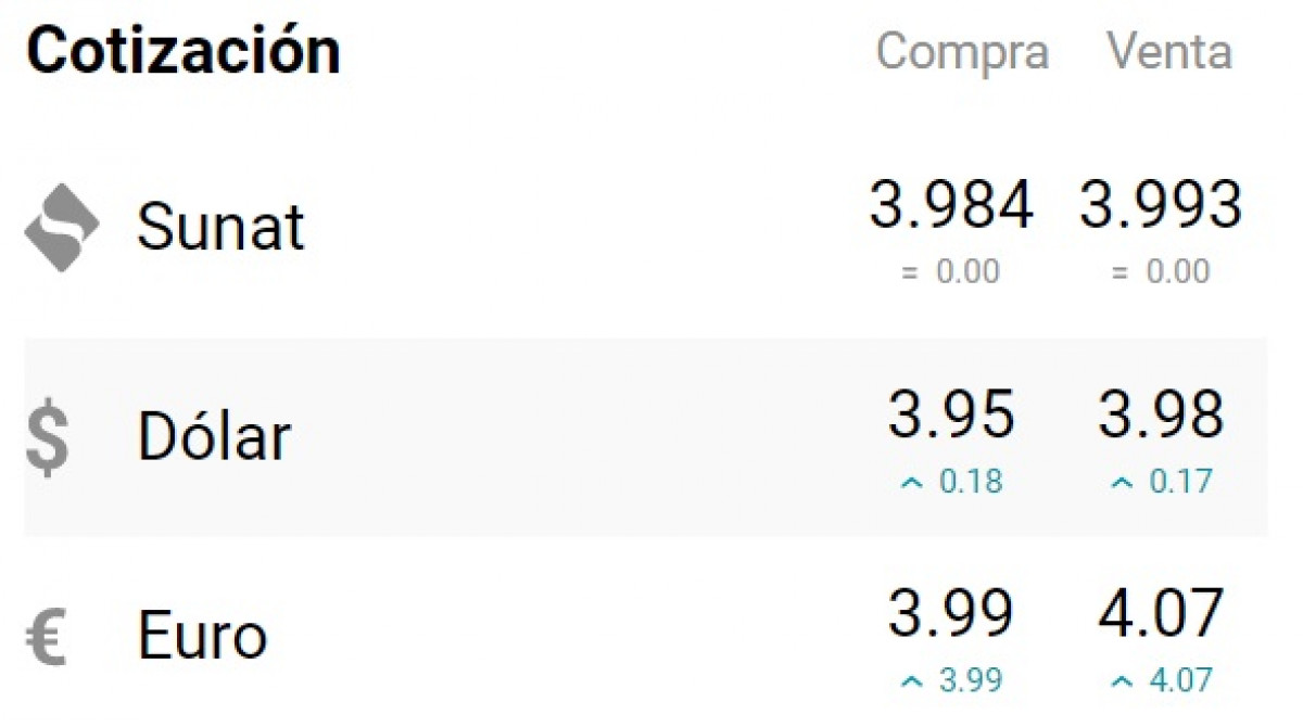 De acuerdo al portal cuantoestaeldolar.pe, el tipo de cambio se cotiza en: