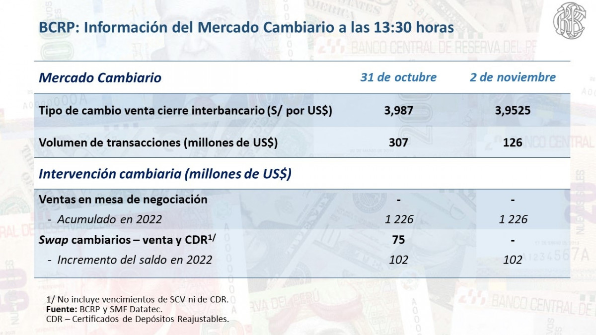 Es importante destacar como dato adicional, que pese a la variación del dólar el Banco Central de Reserva (BCR) ha confirmado que en lo que va del 2022, el tipo de cambio ha registrado una caída de 6.60% en comparación al cierre de la jornada del 31 de diciembre de 2021. Por otro lado, según el portal Bloomberg, la divisa estadounidense se encuentra por apertura en S/ 3.9712.