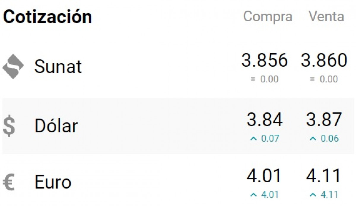 De acuerdo al portal cuantoestaeldolar.pe, el tipo de cambio se cotiza en: